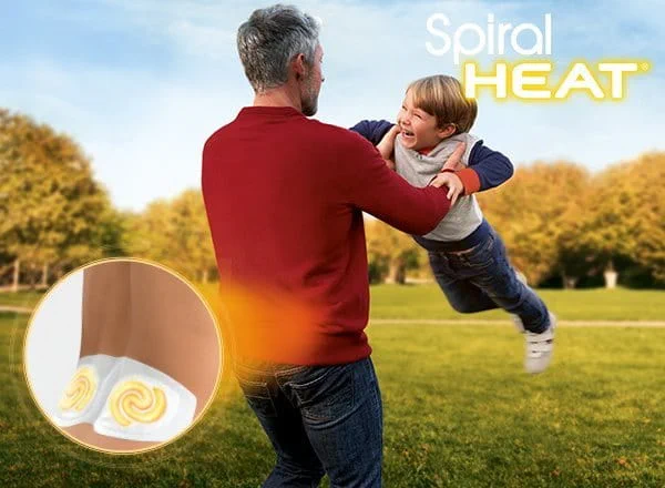 Biedt buitengewone 2D en 3D flexibiliteit dankzij de spiraalvormige cellen. Ze zijn ontworpen om mee te bewegen en mee te strekken met de natuurlijke contouren van het lichaam, terwijl het een behaaglijke warmte levert, precies waar het nodig is. Het innovatieve kleefpatroon van Spiral Heat biedt een optimaal huidcontact en effectieve warmteoverdracht voor 12 uur gerichte pijnverlichting.