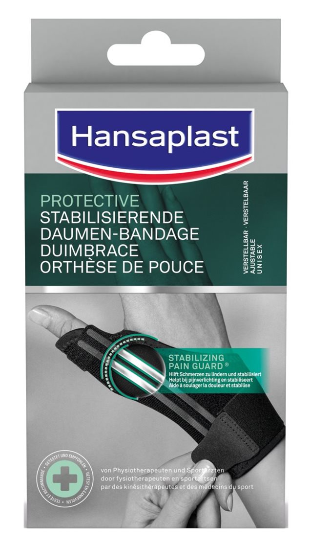 Hansaplast Protective Duimbrace - biedt stevige ondersteuning aan zwakke of geblesseerde duimen en helpt verdere blessures te voorkomen.