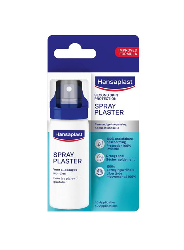 Hansaplast Second Skin Protection Pleisterspray voor het bedekken en beschermen van kleine, oppervlakkige alledaagse wondjes zoals schrammen, snijwonden en schaafwonden. Na het aanbrengen droogt het product snel op en vormt het een onzichtbare, flexibele en ultradunne film die de wond bedekt en beschermt tegen vuil en water.